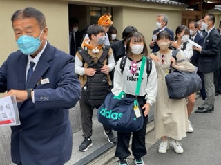 修学旅行10 公開日 2022/10/12 更新日 2022/10/12 学校日記 最終日はタクシー行動で午後京都駅に集合です。 運転手さんが班ごとに迎えに来てくれます。 旅館の皆さんも見送りしてくれます。 いいね(0)