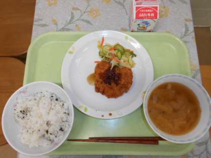 わかめごはん 牛乳 チキンカツ 野菜のイタリアンドレッシングかけ