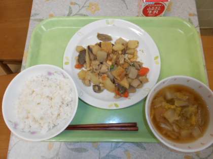 麦ごはん 牛乳 豆入り筑前煮 みそ汁