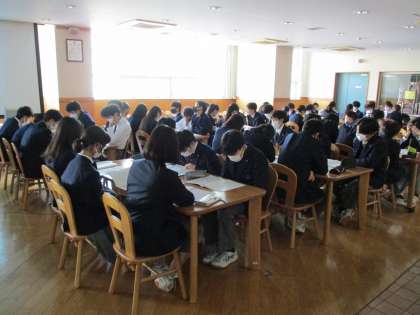 2年生は引き続き全体での進路学習です。明日は高校の先生による訪問授業があります。