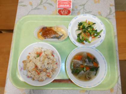 大豆いり子ぎつねごはん 牛乳 魚のみそマヨネーズ焼き
