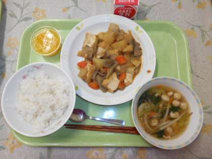 麦ごはん 牛乳 五目うま煮 あんかけ汁