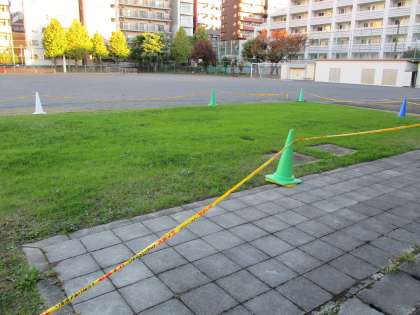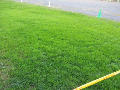 校庭の芝生は立ち入らないようにし養生を行っていました。みなさんの協力のおかげで、芝生も元気になりました。