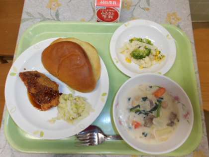 セルフフィッシュサンド 牛乳 白菜の米粉クリーム煮
