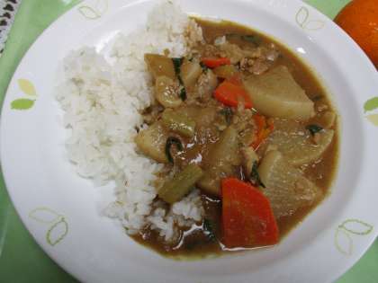 今回のメニューは大根カレーです。その中で使われている大根は世田谷生まれ、せたがや育ちの大蔵大根です。カレーはおかわりです。