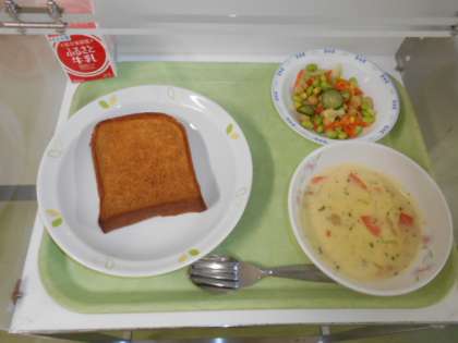 きな粉豆乳トースト 牛乳 シーフードチャウダー