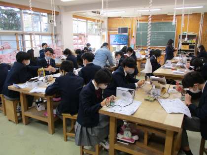 2年生は電気工作を行っています。使い慣れない半田ごてを使いながら丁寧に作業を進めています。