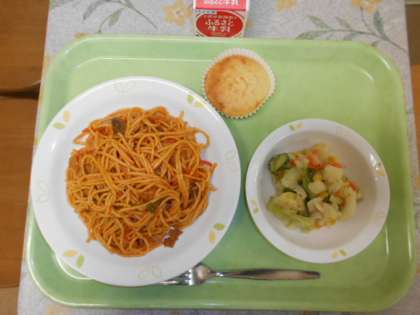 スパゲティナポリタン 牛乳 ポテト入りフレンチサラダ