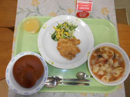 ココアパン 牛乳 フライドチキン ミネストローネ