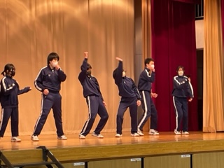 3年生のダンス発表会盛り上がっています。男女別のグループや混合グループとそれぞれで工夫があります。