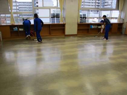 みんながきれいした教室に美化委員がワックスをかけをします。