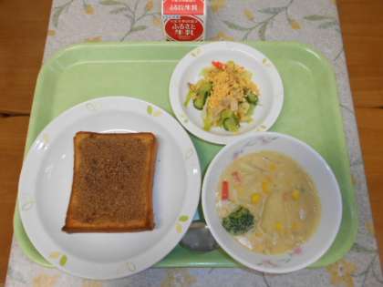 セサミトースト 牛乳 豆乳コーンシチュー