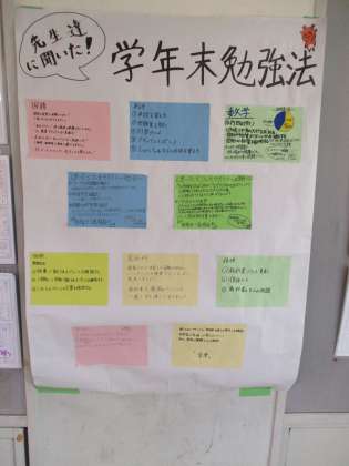 2年生学級委員が取り組んでいる「先生に聞いた学年末勉強方法」です。