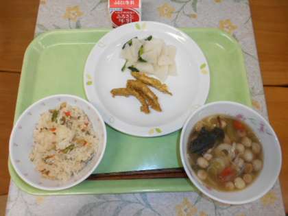 きのこごはん 牛乳 わかさぎのカレー揚げ かぶの甘酢かけ