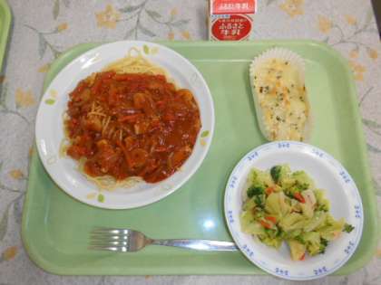 スパゲティ地中海ソース 牛乳 ブロッコリーのサラダ