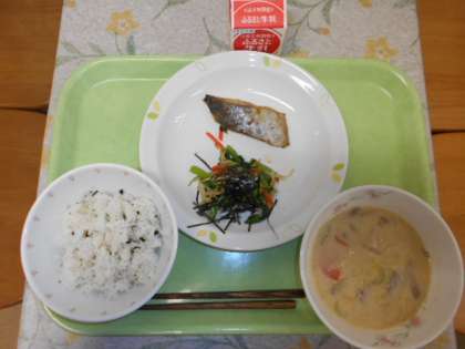 わかめごはん 牛乳 魚の照り焼き 呉汁