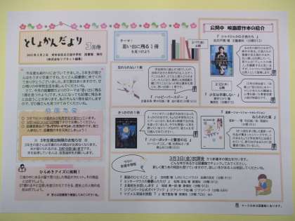 3月号は「思い出に残る1冊を見つけよう」です。記憶や印象残る1冊への出会いを求めてみては。