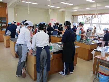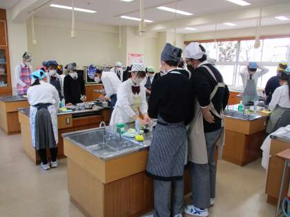 なかなかできなかった調理実習。はじめての実習です。教科の授業も少なくなりました。