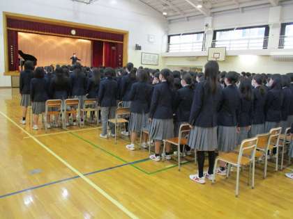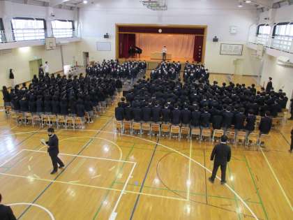 卒業式前最後の全校練習。それぞれの思いが動きや合唱に込められます。