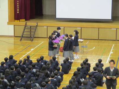 各クラスに鉢植えの記念品贈呈も行われました。お礼の言葉も堂々としたものでした。