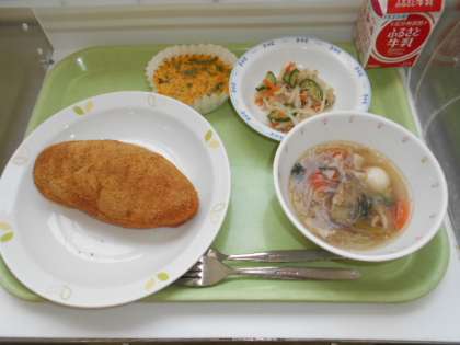 あげパン(きなこ) 牛乳 春雨スープ 大根とツナのサラダ