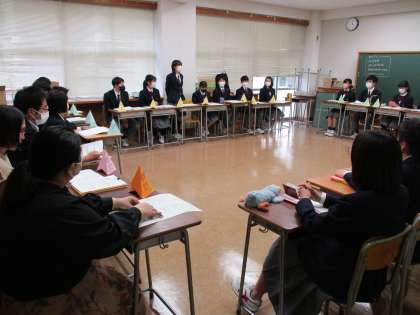 生徒会本部役員、各専門委員長、クラスの学級員で構成される委員会。生徒総会向けて進めています。