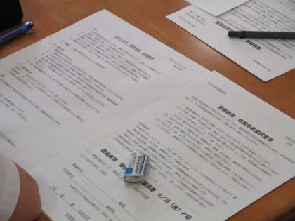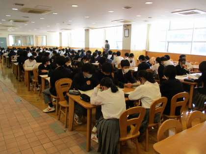 2年生は、全体で職場体験についての話がありました。これから準備を進めていきます。