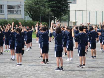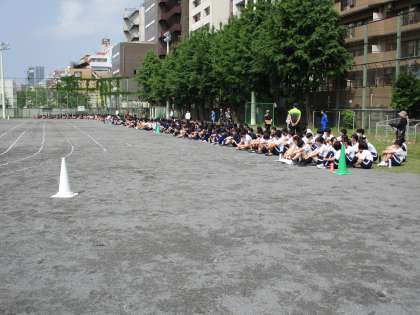 続いて体操の練習、生徒席の確認、最後に三宿競技の入場並び方を行いました。