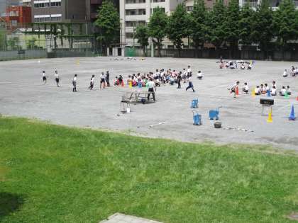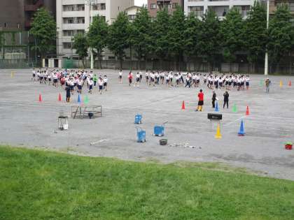 全員リレー、三宿競技を実施。最後に学年種目にも取り組んでいました。