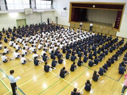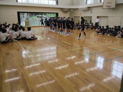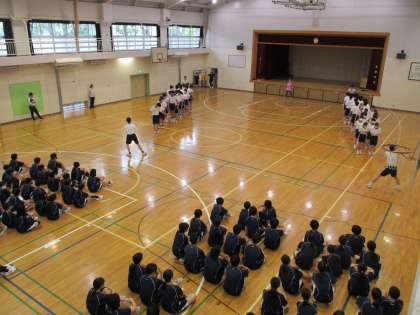 2回目の今回は雨模様。体育館に集合です。全体で順番に三宿競技を行いました。
