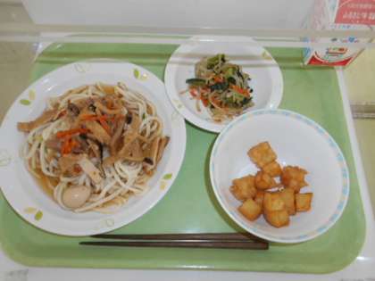 冷し五目めん 牛乳 いかとじゃがいもの揚げ煮