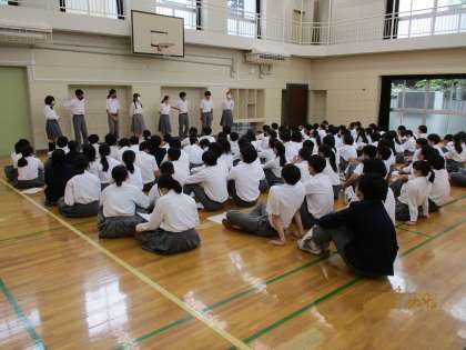 修学旅行に向けて 公開日 2023/06/09 更新日 2023/06/09 学校日記 体育大会という大きな行事を終え、次に向かって進んでいます。3年生にとってみれば大きな行事ひとつです。全体の説明に続いて実行委員の紹介がありました。 いいね(0)