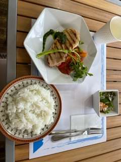 今日のお昼はチキングリルで料理長から、コーヒープリンもいただきました。みんな大満足。
