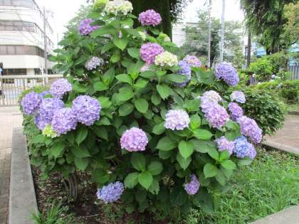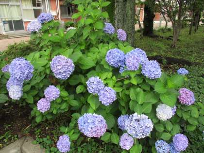 三宿中には色々な場所に紫陽花の木があります。今まさに見頃を迎え、大きな花を咲かせています。色の違いも鮮やかです