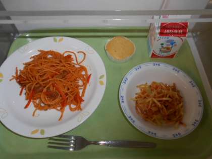スパゲティナポリタン 牛乳 パリパリサラダ