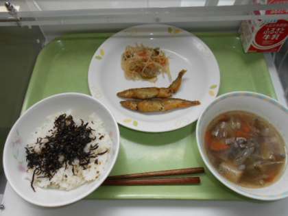 ししゃものカレー揚げ 切り干し大根のベーコンソテー
