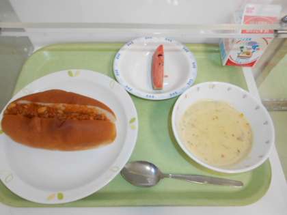 チリコンカンドッグ 牛乳 コーンチャウダー