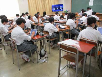 3年生は修学旅行の学習に取り組んでいます。2年生は区の調査を実施していました