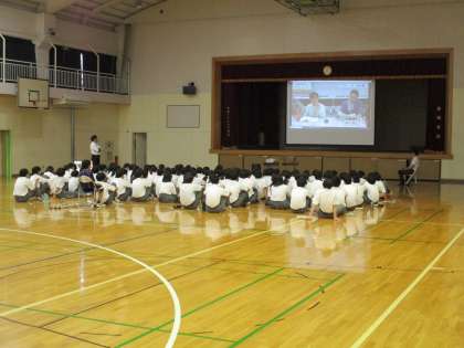 2年生は、職業体験の一環として今回テレビ局の方に来ていただき、ドラマを作るには色々な仕事の人が関わっていることなど説明がありました。