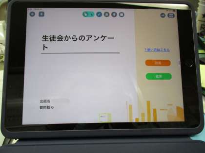 生徒会アンケートを実施 公開日 2023/07/04 更新日 2023/07/04 学校日記 昨日の生徒会朝会で説明のあった生徒会サミットに向けた生徒会アンケートをロイロノートを使って早速実施です。 いいね(0)