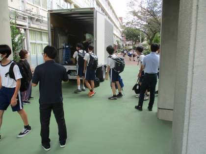 3年生は,修学旅行に向けて大きな荷物を先に宿に送ります