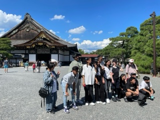 三十三間堂と二条城、金閣寺、嵐山の渡月橋をバックに記念撮影、竹林を散策しました。
