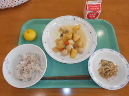 ゆかりとじゃこのごはん 牛乳 豚肉と大根のうま煮