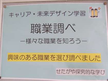 1年生が行っていた進路学習 職業調べ。いろいろな職業のことが一目でわかります。