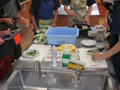 調理実習を行いました 公開日 2023/09/21 更新日 2023/09/21 学校日記 1年生4クラスとも家庭科の授業は、調理実習でした。きゅうりを色々な切り方で切り、きのこと合わせて炒めました。 いいね(0)