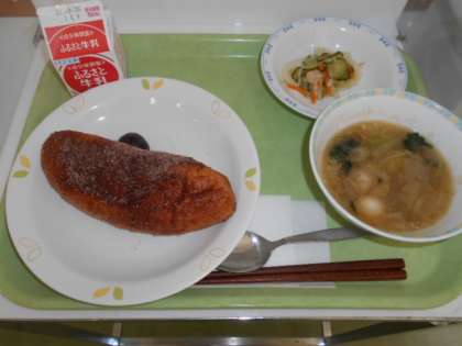 あげパン(ココア) 牛乳 肉だんご入り春雨スープ