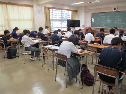 全体で選挙管理委員より投票上の注意があり教室で投票です。投票用紙が配られ記入開始です。
