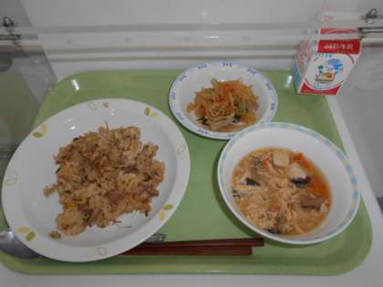 豚と豆もやしの中華ご飯 牛乳 切干しだんこんのシャキシャキサラダ