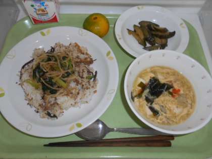 ビビンバ 牛乳 きゅうりのみそソテー わかめスープ