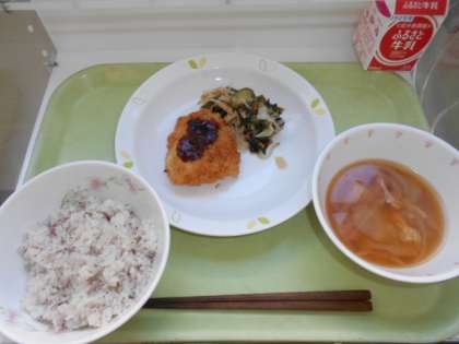 ゆかりごはん 牛乳 チキンカツ 和風サラダ
